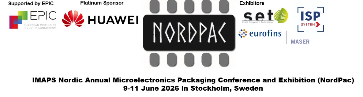 The 2026 IMAPS Nordic Microelectronics Packaging Conference and Exhibition, NordPac Jun 9 June 9, 2026 @ 8:00 am - June 11, 2026 @ 5:00 pm The 2026 IMAPS Nordic Microelectronics Packaging Conference and Exhibition, NordPac